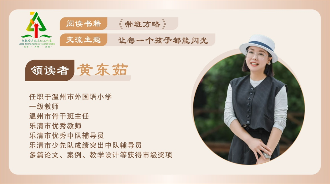 教育家严长寿先生在《教育应该不一样》中说:“教育不是装满一壶水,而是点亮每个孩子心中的蜡烛,让他发光、发亮。”教育,就是让每一个孩子以不同的方式发光。作为班主任,如何带班?如何提升教育层次?如何形成自己的的育人理念?温州市外国语小学的黄东茹老师分享的《带班方略》为我们开辟了新的思路。 习总书记曾说:“浇花浇根,育人育心。”黄老师从自己带班的实践经验出发,运用独特的方法,明自我,明他人,明环境,让班级成为小海星们成长的乐园。海星点点,绽放光芒。教育的过程就是辛勤农耕的过程。班主任工作是辛苦的,它需要我们本着朴素的教育情怀,付出智慧和情感;班主任工作又是幸福的,因为我们可以体会丰收的喜悦。我们不知道,教育会在哪一个时刻收获,但我们能确定的是:唯有戒除浮躁,深耕细作,才能迎来教育之花的盛开。